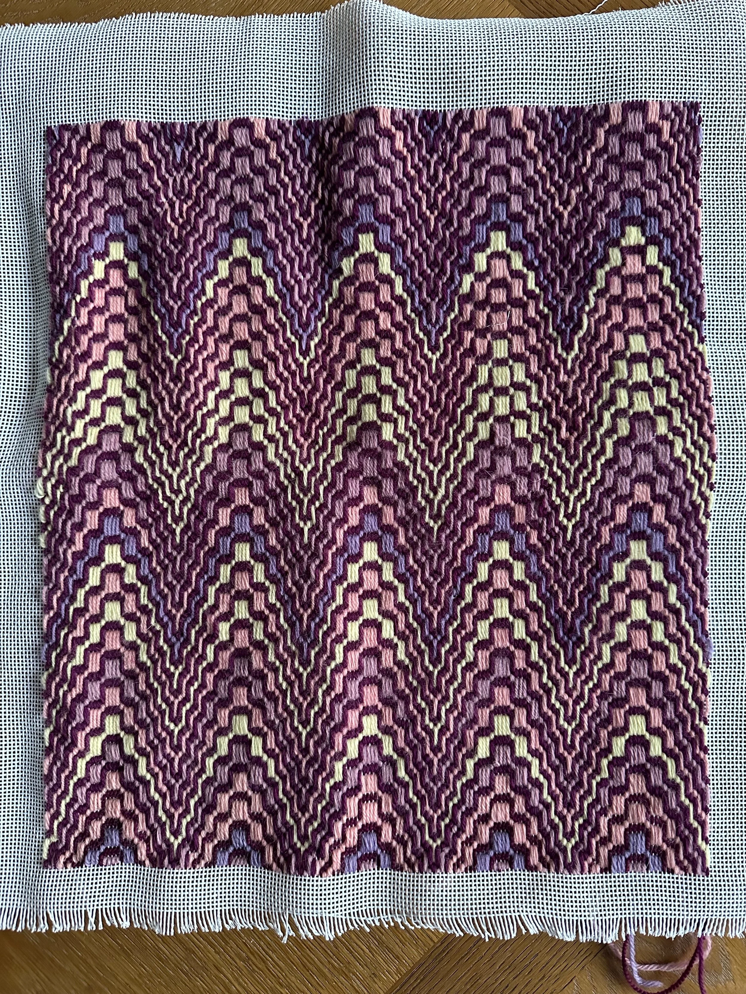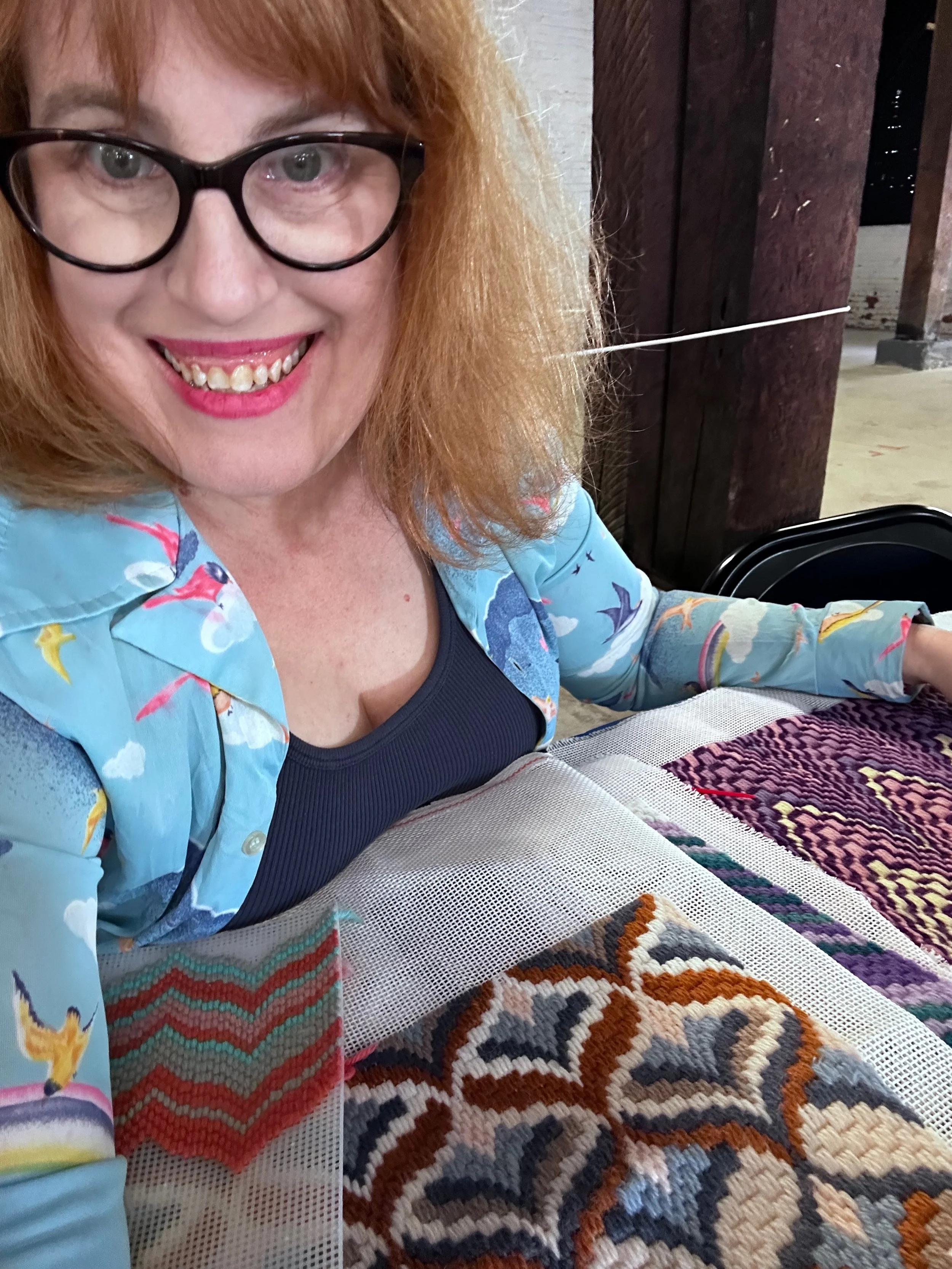 Bonnie Natko was surrounded by fiber arts and textiles from a young age, but oddly didn’t start her stitching journey until three years ago, when everything just clicked. Since then, she has developed an ever-evolving stitching practice that includes embroidery, bargello, needlepoint, and weaving. In her work, Bonnie likes to infuse high-tech concepts with hand-crafted work, and is a true proponent of experiential learning. In 2022, she created Data Stitching, which is a way to learn data visualization through bargello needlepoint, and as a mindfulness practice to help her with her daily journaling practice. She’s currently teaching workshops to learners of all ages and skill levels and will be participating in the Coney Island Maker Faire in October 2024.